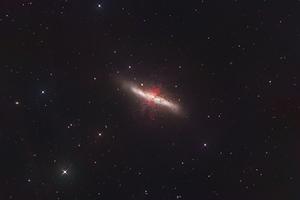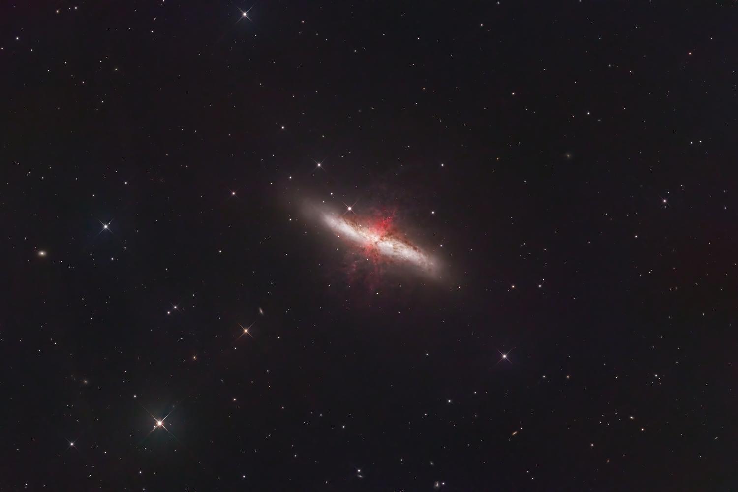 The Cigar Galaxy Messier 82 is a Starburst galaxy located in the constellation Ursa Major. It is approximately 12 million light years away